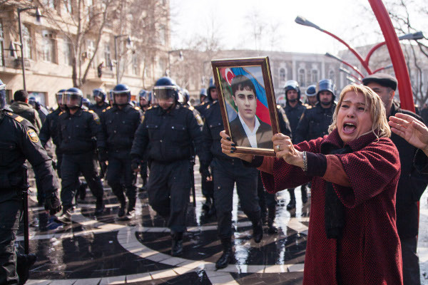 23. Митинг против небоевых потерь в армии на Площади фонтанов в Баку. Фоторепортаж корреспондента "Кавказского узла" Азиза Каримова.