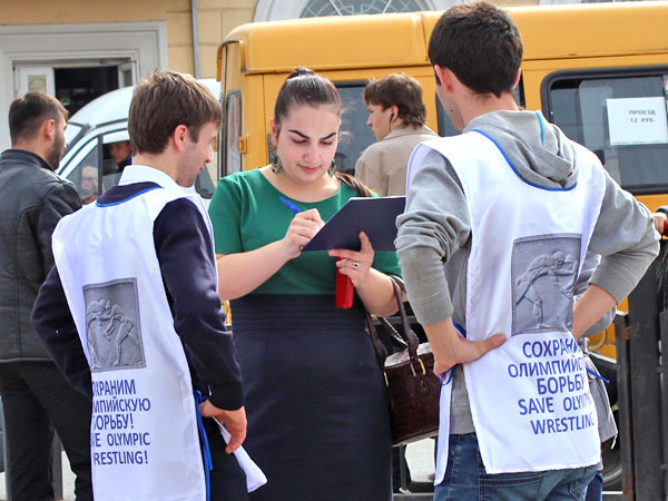 Флеш-моб за сохранение борьбы в качестве олимпийского вида спорта. Владикавказ, 15 марта 2013 г. Фоторепортаж корреспондента "Кавказского узла" Эммы Марзоевой