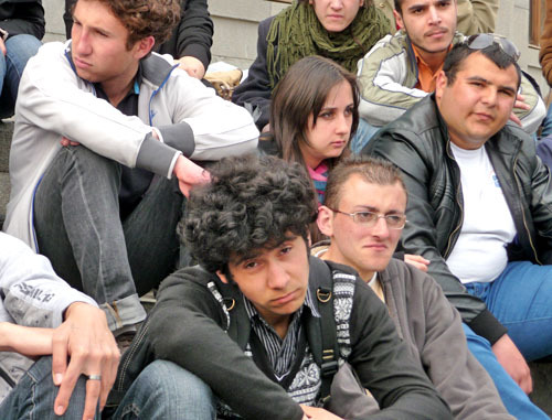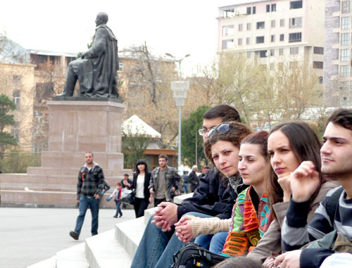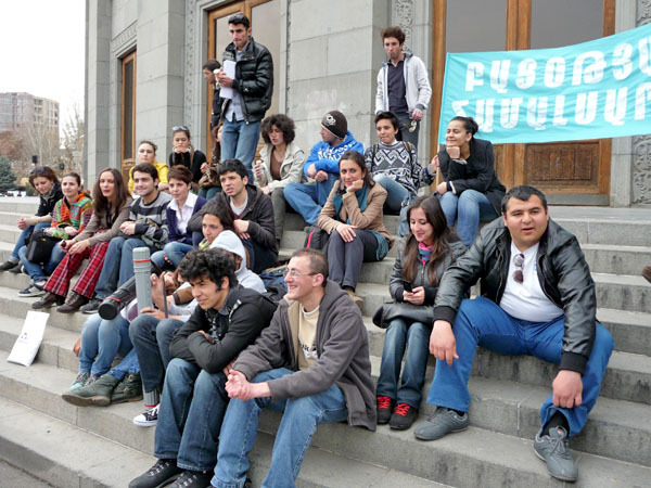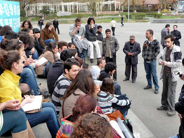 Студенты из различных ереванских вузов приняли участие в организованном "Университетом под открытым небом" обсуждении выборов и борьбы с фальсификациями на них. Ереван, 27 марта 2013 г. Фоторепортаж корреспондента "Кавказского узла" Армине Мартиросян