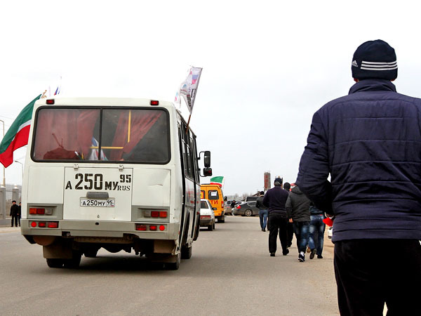 На игру «Терека» с «Зенитом» из Грозного в Махачкалу отправились тысячи чеченских болельщиков. Махачкала, 31 марта 2013 г. Фоторепортаж Руслана Алибекова