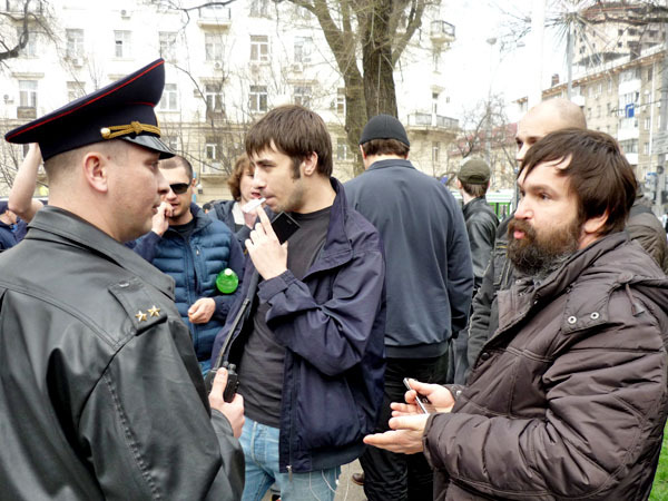 Четыре человека были задержаны сегодня в Ростове-на-Дону в ходе проведения акции "День русского гнева". Ростов-на-Дону, 13 апреля 2013 г. Фоторепортаж корреспондента "Кавказского узла" Олеси Диановой