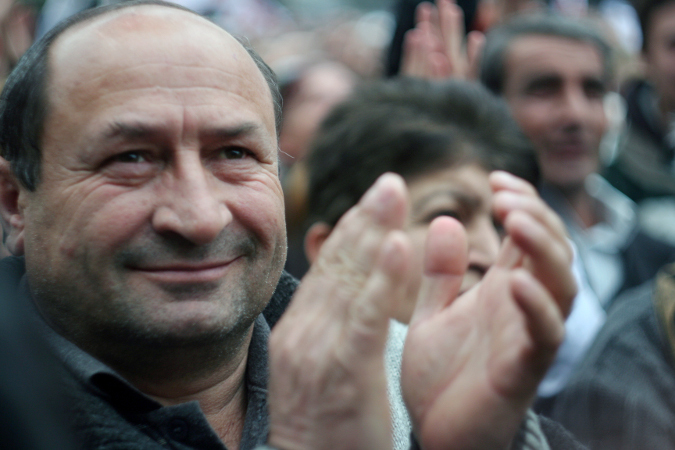 Сторонники «Единого национального движения» собираются на митинг. Фото Беслана Кмузова.
