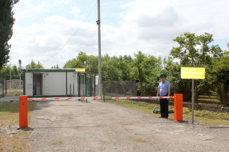 Пограничник проверяет абхазский паспорт жителя села Отобая.