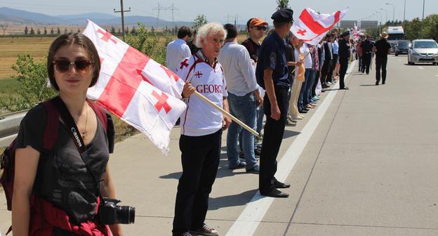 Акция "Сила в единстве" прошла 8 августа 2017 года в приграничном грузинском регионе Шида Картли. Ее участники выстроились в "живую цепь" и почтили память погибших в пятидневной грузино-российской войне. Они обвинили Россию в оккупации территорий ...