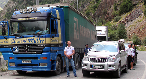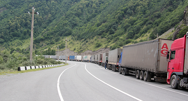 Многокилометровая автомобильная пробка образовалась на российско-грузинской границе. 10.07.2016. Репортаж корреспондента "Кавказского узла"