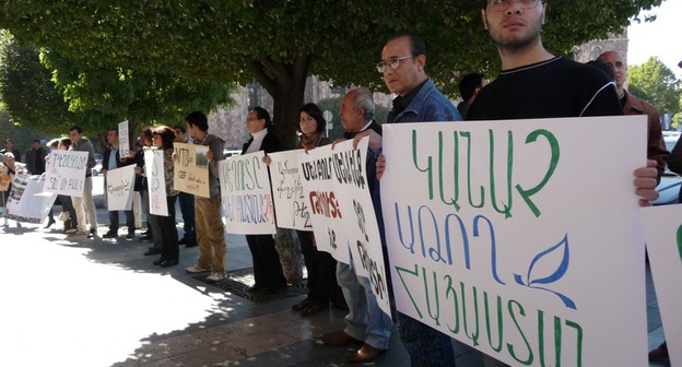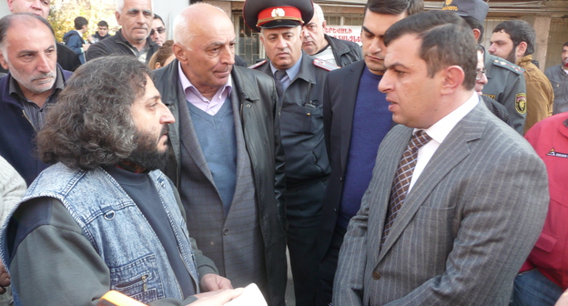 В Ереване жители домов, расположенных на улицах Саят-Нова, 10, 12, Налбандяна, 25 и Абовяна, 22/а, предотвратили подготовку к точечной застройке в своем дворе. Фоторепортаж корреспондента "Кавказского узла" Армине Мартиросян от 4 ноября 2013 года.