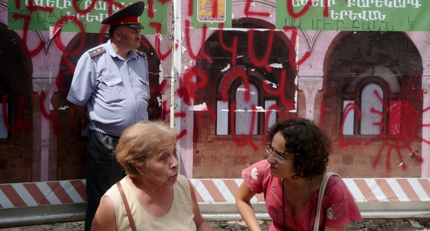 Жители улицы Комитаса протестуют против точечной застройки. Фоторепортаж корреспондента "Кавказского узла" Армине Мартиросян от 21 августа 2013 года.