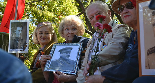 Ветераны Второй мировой войны с наградами, представители более молодого поколения с военной атрибутикой, одетые в военную форму, 9 мая в рамках акции "Бессмертный полк" несли десятки тысяч портретов участников Великой Отечественной войны по улицам...