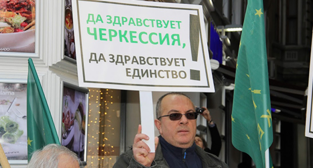 Протестная акция черкесских активистов прошла 19 декабря 2015 года в Стамбуле у генконсульства России на улице Истикляль в связи с арестом репатрианта Аднана Хуаде и его дочери в Адыгее